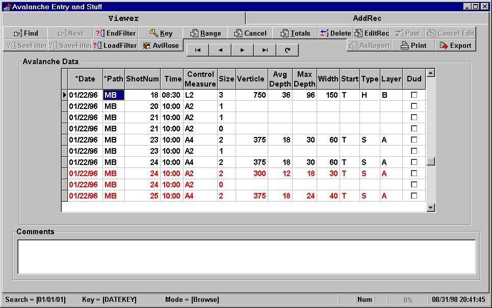 to filter the database. Instant information on avalanche paths or shot numbers is