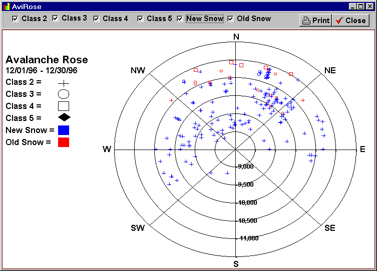 type of avalanche occurrences they want to appear on the graph. Having an extensive